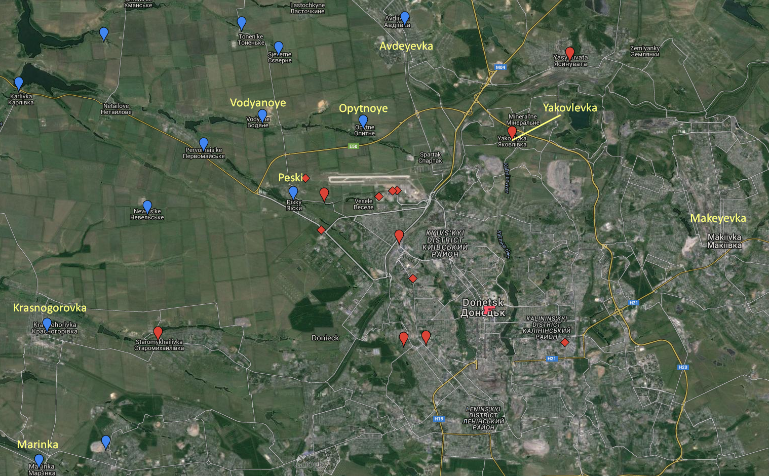 South-west of Avdeyevka, Ukrainian positions in Peski, Vodyanoye and Opytnoye have come under heavy fire.