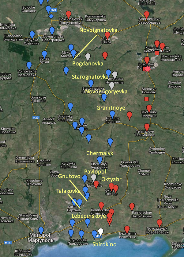 According to Chepurnoy, the village of Talakovka, 7 kilometres from the edge of Mariupol, was bombarded with Grad MLRS at 22:33.