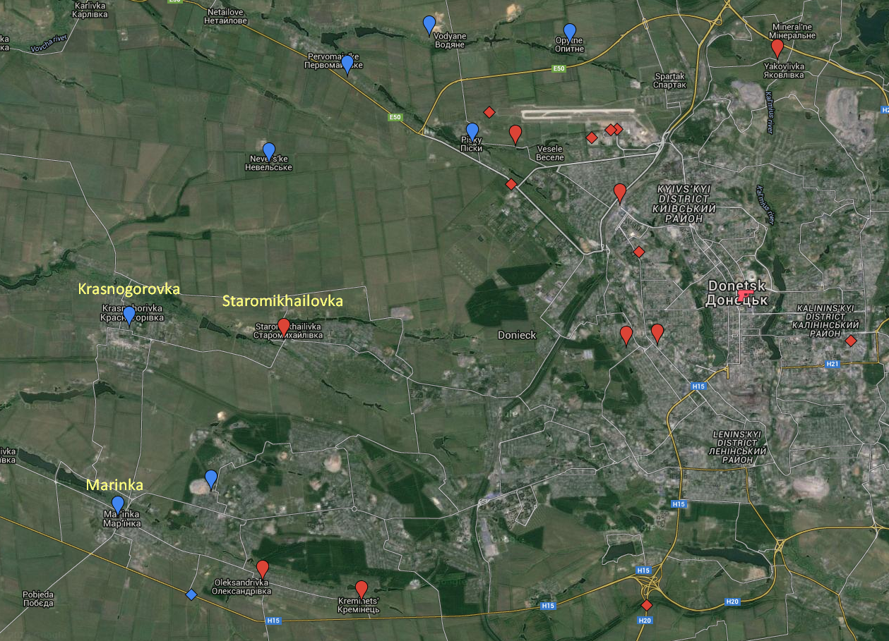 Around an hour later, the Ukrainian military claims, a fortified position in Krasnogorovka, west of Donetsk, was shelled with 122 mm artillery from the direction of separatist-held Staromikhailovka.