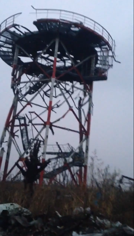 Smoke rises after a mortar falls near Ukrainian positions outside Donetsk. Screenshot from TSN video