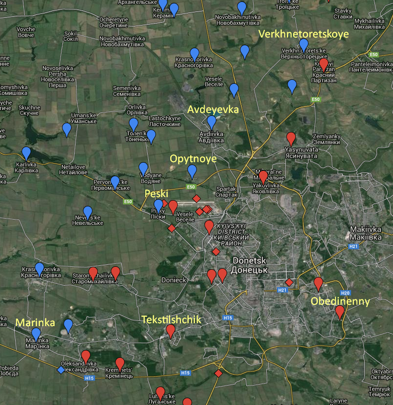 To the west of Donetsk, Russian-backed fighters reportedly conducted targeted attacks with automatic grenade launchers on the Marinka suburb. To the north of the separatist-held city, Ukrainian troops near Peski, Opytnoye and Avdeyevka were attacked with rocket-propelled grenades and small arms. To the northwest there were grenade launcher and small arms attacks outside Verkhnetoretskoye.