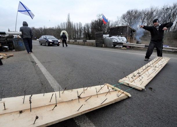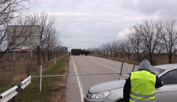 2038 GMT: Kyiv Post has this picture of a checkpoint manned by ununiformed men near the city of Armyansk, on February 28, 2014.