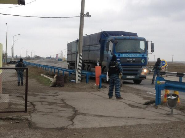 Crimean berkut check a truck passing southward from mainland #Ukraine into Crimea. pic.twitter.com/G29uFSQuOq