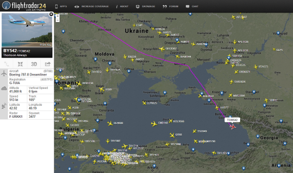 Flights are avoiding the closed airspace over #Simferopol #Crimea #Ukraine http://t.co/0N7Pql6zMK pic.twitter.com/hdvXjF2z79 — Flightradar24.com (@flightradar24) February 28, 2014