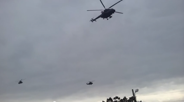 Whether these are Russian military helicopters, or Ukrainian forces deploying in response is unknown at the moment.