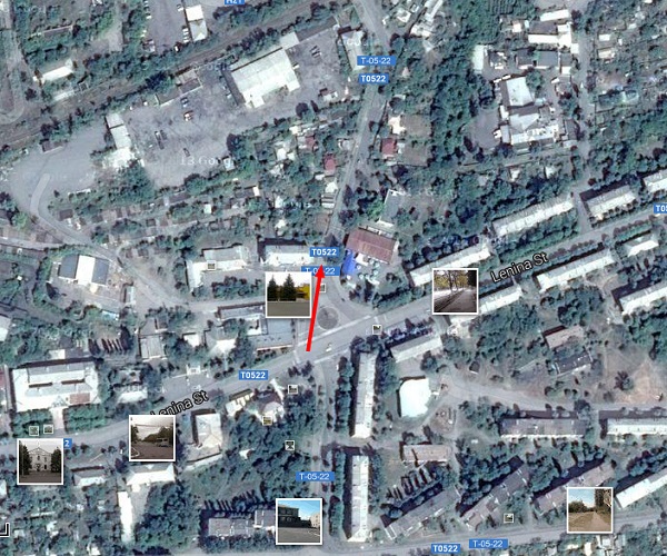 2) Lugansk is a long ways from Snezhnoye. In fact, the main body of the Ukrainian military anti-terror operation is south of Lugansk. These tanks would have to travel through, or around, the Ukrainian military front lines. It’s also important to note that in the video that we have geolocated the tank is traveling north — toward Lugansk. If the vehicle traveled from Lugansk to this area of Ukraine, it may have traveled across the Russian border and to the border in Ukraine’s southeast corner.