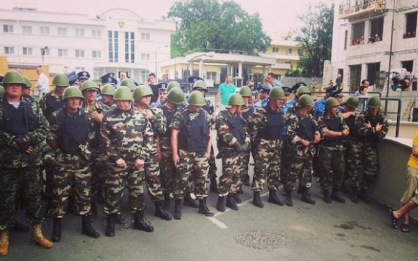 Ukrainska Pravda reports that four protesters had been arrested. The governor of the oblast, Igor Palitsa, announced that explosives and a knife had been found. One of those arrested is not a resident of Odessa. They were allegedly operating “under the guise of being Praviy Sector activists”. An official said that: