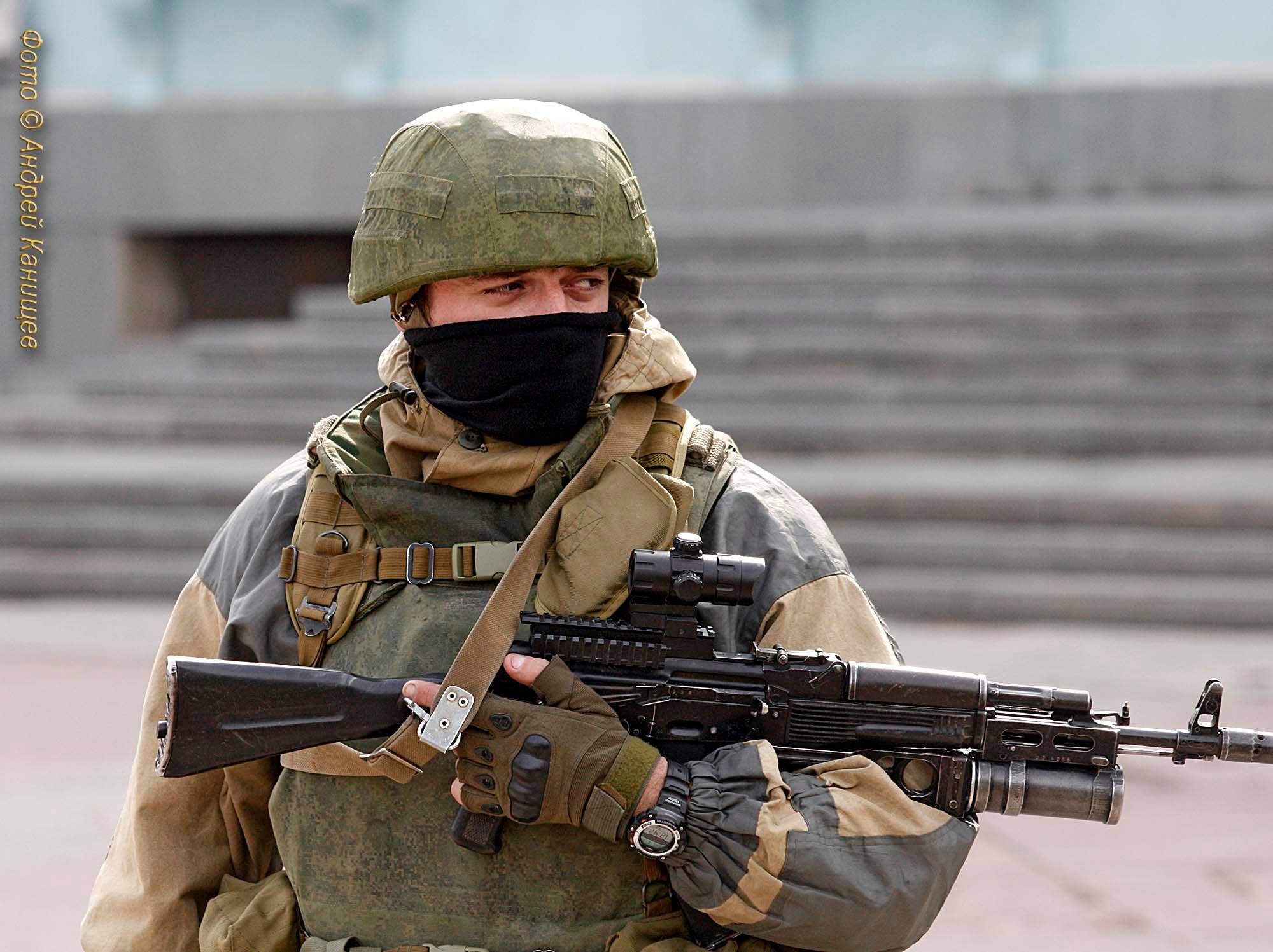 “In the photographs, you can see the VSS sniper’s rifles, the Vintorez, that’s the Russian Federal snipers’ rifles, with silencers. They are used by the special divisions. The uniforms are the standard uniforms for the motorized regiments, they can be motorized troops or airborne troops in such a uniform.”