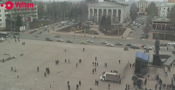 1625 GMT: Earlier we reported an unusual rally in Donetsk, where pro-Russian protesters held a rally but then quickly dissolved as soon as it was done (jump to update 1504). Here’s a picture from earlier in the day:
