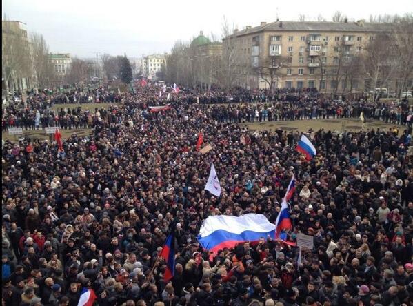 Pro-#Russia protesters in the eastern #Ukraine city of Donetsk. pic.twitter.com/Omr7BNadP0 via @sputnikipogrom
