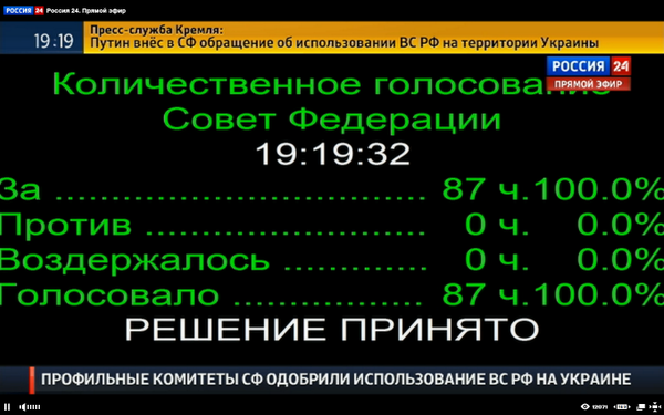 Unanimous vote in #Russia's Federation Council to send Russian troops to #Ukraine.