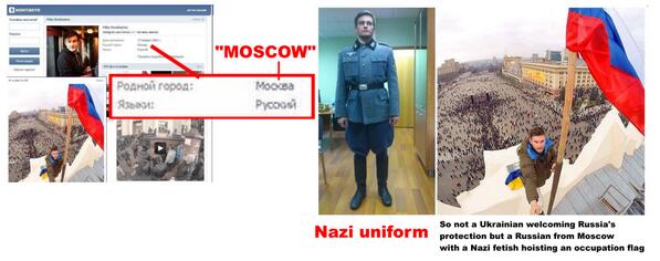 - “Kiev,” the catchphrase for these radicals who are now running the country, is sending provocateurs to takeover government buildings in Crimea (interjection — there is literally no evidence that this is true). Therefore: