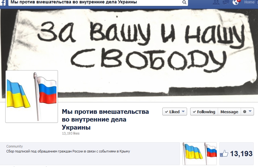 According to Skoropadskiy, Right Sector’s position is “not to succumb to provocations or start them first, but we are ready to meet Russian occupation troops if they start fighting.” The group’s page did not appear to be blocked as we have been refreshing it regularly, but some readers report that it was not accessible for a time today. The appeal to Umarov is now indeed deleted, but another appeal in Russian “to the peoples of Russia” can still be seen: