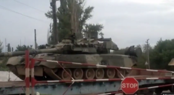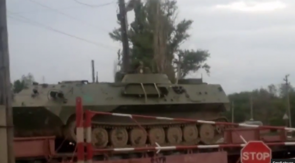 With video emerging that appears to show a large quantity of Russian heavy armour being ferried by rail close to the border at Millerovo (notably close to Lugansk) yesterday, it appears that an outright invasion by Russia may already be beginning.
