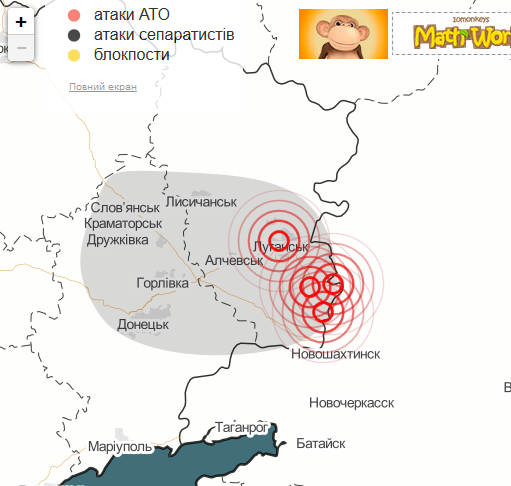 Dmytro Tymchuk, a Ukrainian arms expert who appears to have contacts within Ukraine’s military, has made an interactive map of the fighting across Ukraine. The map can be see here but here is a screenshot of the latest: