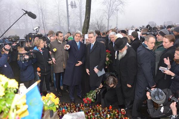 #US Secretary of State John #Kerry at the place where around100 #ukrainian protesters wereMurdered bySnipers onFeb.20 pic.twitter.com/mXiP2UydgH