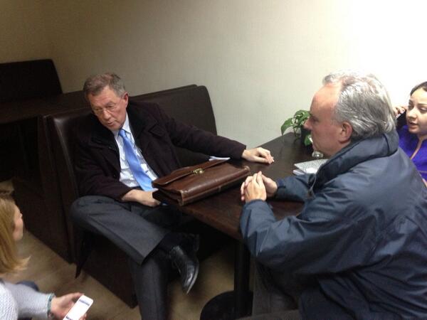 UN special envoy Robert Serry with me in coffee shop. Outside local militia block the door. #Ukraine pic.twitter.com/pbotNqCG3i