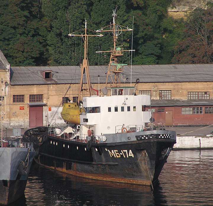 The tug can easily be identified by its ID number on its hull, “МБ-174,” which, according to both Russian language and English naval websites, is a Russian tug from the Black Sea fleet: