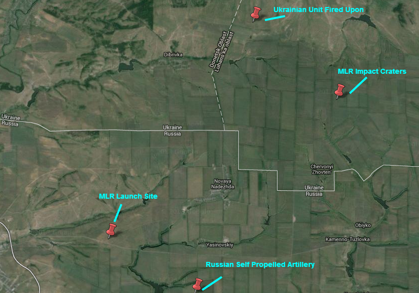Two days before the photo showing evidence of rocket bombardment was taken, on the night of July 24, Ukrainian forces near Dyakovo reported being shelled from across the border with both artillery and mortars. Shelling was also reported on the night of July 22.