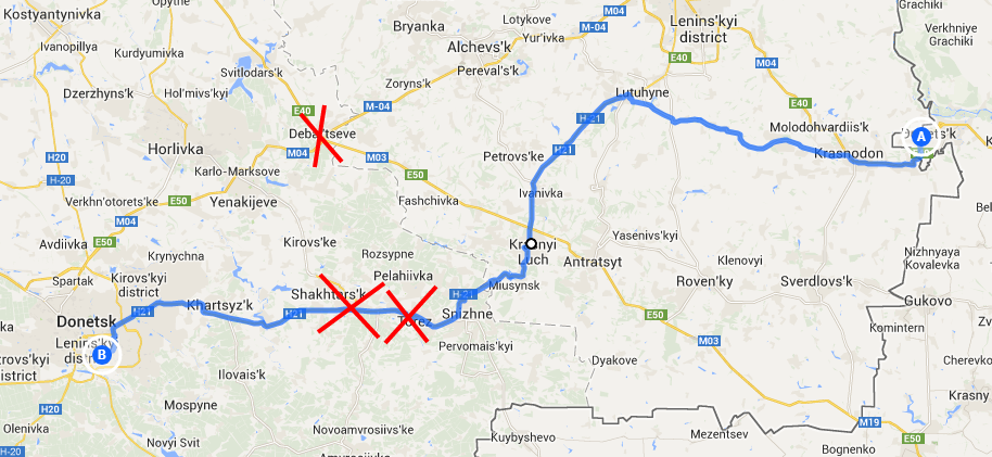 However as Ukrainian forces have moved on and apparently retaken Debaltsevo, this route is now blocked.