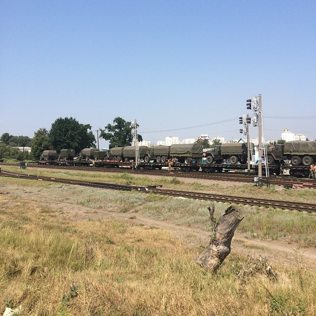 An Instagram user uploaded a photo of a Russian armored vehicle convoy on the rails yesterday August 12 which was geolocated to Belgorod. He added the hashtags in Russian “#Putin #bring in #troops.”