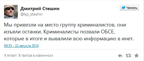 Translation: @kp_steshin We brought a group of forensic experts, they have removed the remains. The forensic experts summoned the OSCE, which in the end put out all the information on the Internet.