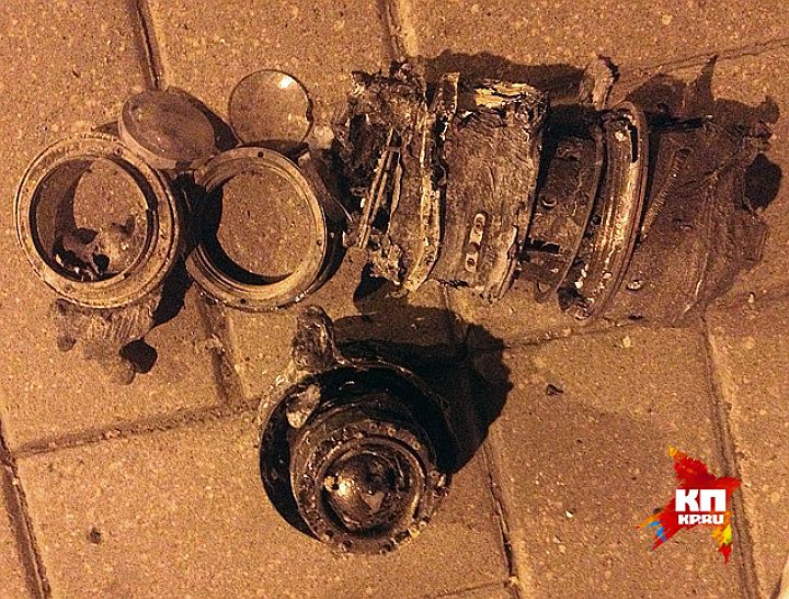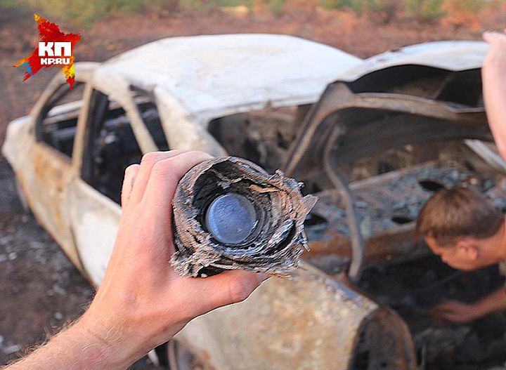 Found near the remains of the auto — burnt-up photo lenses. Photo by Aleksandr Kots, Dmitry Steshin.