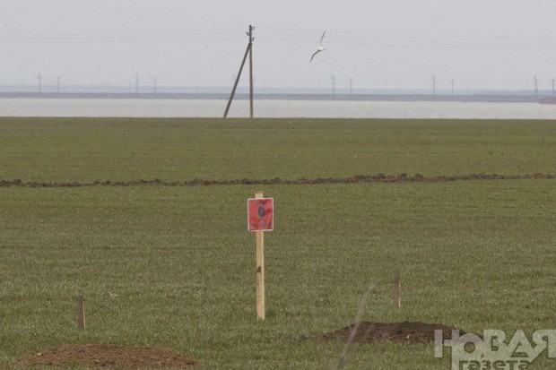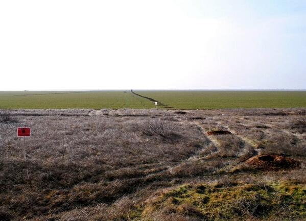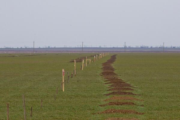 Чонгар. Викопані трактором ями в полі для прикордонних стовпів та табличка: «Обережно! Заміновано!». pic.twitter.com/FgXsNLFKvl