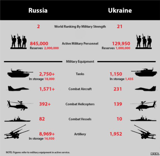 RFE/RL has written an entire article about the subject. One key thing to remember, however, is that the Ukrainian military, while outmatched, is not incapable of defending itself: