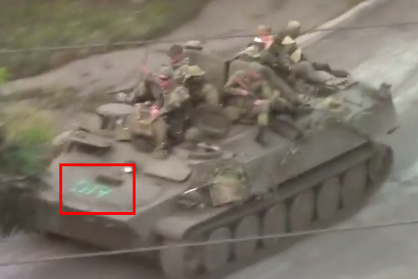 In this picture there appears to be some sort of green lettering or numbering on the side of the vehicle, an MT-LB.