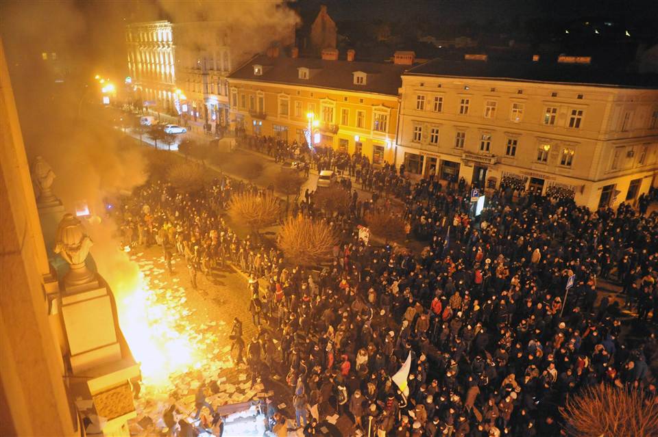 Thousands of protesters in Rivne forced local attorneys to leave their offices, screaming "killers" at them