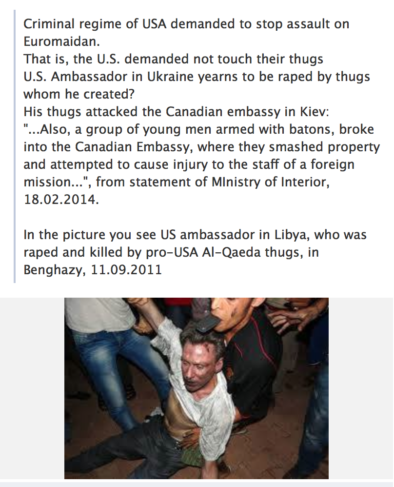 0534 GMT: A page claiming to be the official Berkut Facebook page has posted some extremely offensive posts (screenshots below):