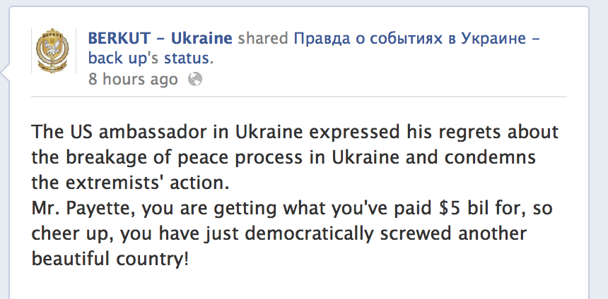 The page was only started on January 22, however, and it is unclear if this is an official page, an unofficial page, a page made by Berkut members, Berkut supporters, or whether it is there to discredit the Berkut.