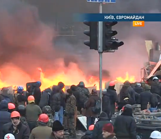 1724 GMT: Things seem to be heating up a little in Maidan. It’s 7:24 PM in Ukraine. Last night, the main attack on the square was launched by riot police at 8 PM.