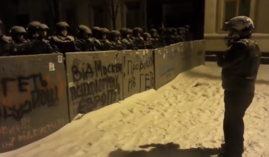 Yesterday, police gathered near Maidan square, and right before 8 PM they announced an anti-terrorist operation before they stormed the square, effectively branding all protesters who remained in the square as terrorists.