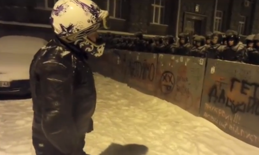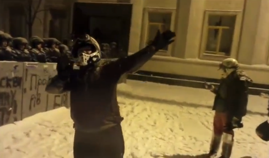 Opposition member Oleh Leshko: “With the help of god and Molotov cocktails and a rock from the Khreschatyk Street pavement, we will win.”