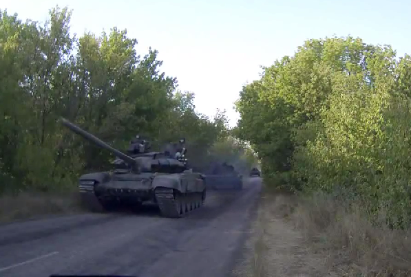 SkyNews footage of Russian armor outside of Mariupol September 3.