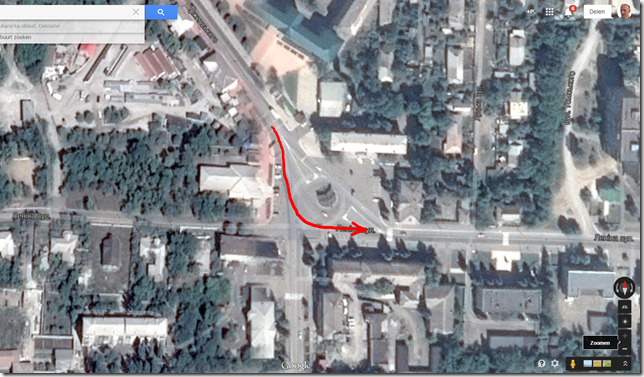 The video has been geolocated to this position on Google Maps in Perevalsk, Lugank Region for The Interpreter by @djp3tros, the blogger at Ukraine@War.