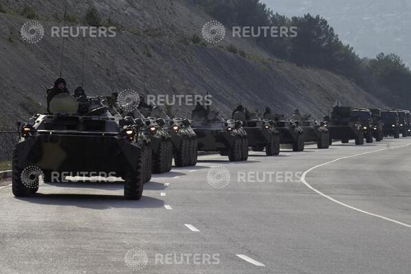 Та же колонна БТР на дороге у Севастополя (фото: Reuters/Baz Ratner) pic.twitter.com/BA8ZhjefEY