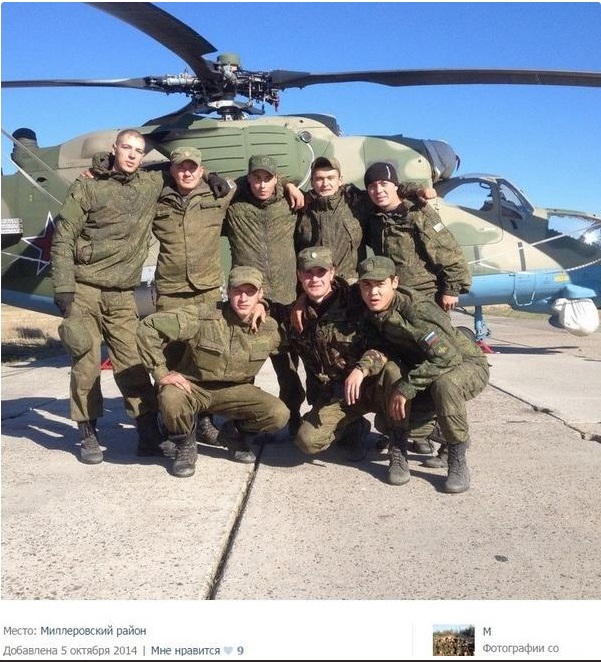 Komaxidze also published photos of Russian soldiers with the helicopters, reportedly posted on the popular Russian social media network VKontakte on October 5.