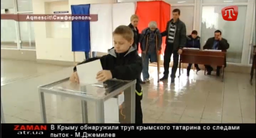 2050 GMT: The Crimean Tatar TV station ATR has reported at 19:30 pm local time on numerous violations of election law during the referendum. While the self-appointed government of Sergei Aksyonov is already celebrating, official results will not be announced in parliament until tomorrow morning. Turnout was 77.9% according to Mikhail Malyshev, head of the Commission for the All-Crimean Referendum on Status of Crimea; the highest turnout was in Kerch, where 82% of eligible voters appeared, and the lowest in Belogorsk and Kirov Districts, where there were still more than 50% of voters. In many districts, the number of votes on the additional lists exceeded the number of existing voters on the rolls.