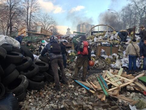 It is now very dangerous on the streets. Unclear – is the power structure collapsing or is a trap being prepared? Titushki’s with Kalashnikovs around, protesters being shot. Also demonstrators have weapons, partially brought in from Lviv where an arsenal was captured… Revolution in the streets of Kyiv. This is the final showdown.