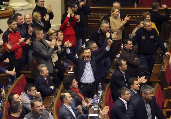 Photo: Ukrainian opposition members celebrate during the voting in parliament in Kiev (Reuters) pic.twitter.com/vICDRPUeiZ