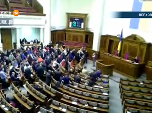 1919 GMT: We’ve been reporting today that, according to several sources, many members of Yanukovych’s party have fled the country. This is also evidenced by the fact that the Rada (parliament) is mostly empty, and appears to largely be devoid of Yanukovych’s supporters.
