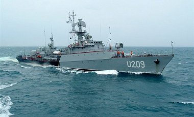 There were no flags on display on the sterns of the corvettes – called Lutsk and Khmelnitsky – where the national symbols would normally be visible.