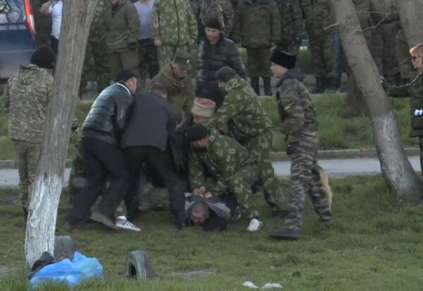 . German journalist @DEmmerich: Journalists pushed to the ground at #Belbek base. Russian army shows no mercy. pic.twitter.com/Nty3TW5w1y
