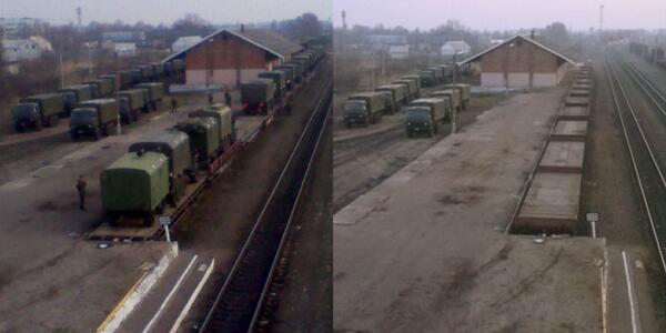Now you see them, Now you don’t. Russian army unloads in Novozybkov, March 26 #Ukraine SRC http://t.co/nnM0k5hvx4 pic.twitter.com/sbuYhJOfnw