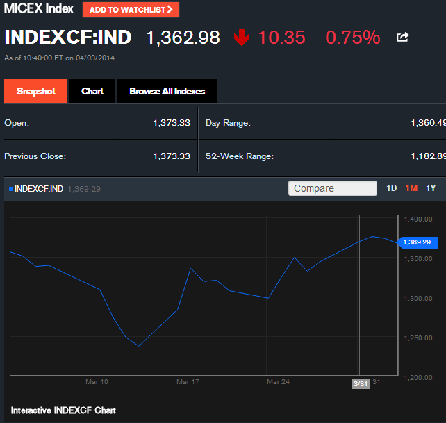 1647 GMT: While the S&P 500 is surfing record highs, the Russian MICEX continues to struggle. It is down for the 2nd day in a row, losing .75% of its value again today: