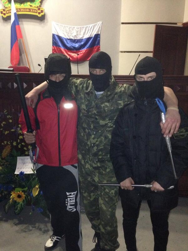 Pro-Russia protesters inside the occupied govt building in Donetsk, armed with metal rods pulled from railings pic.twitter.com/TabXjXJSGJ
