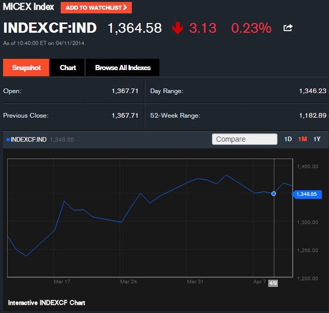 1756 GMT: Market watch – the Russian MICEX was down .23% today in what has been an up and down week. Stocks are nearly at the same levels that they were at on Monday (they are up slightly). The Russian Ruble is also down .21% against the US dollar: